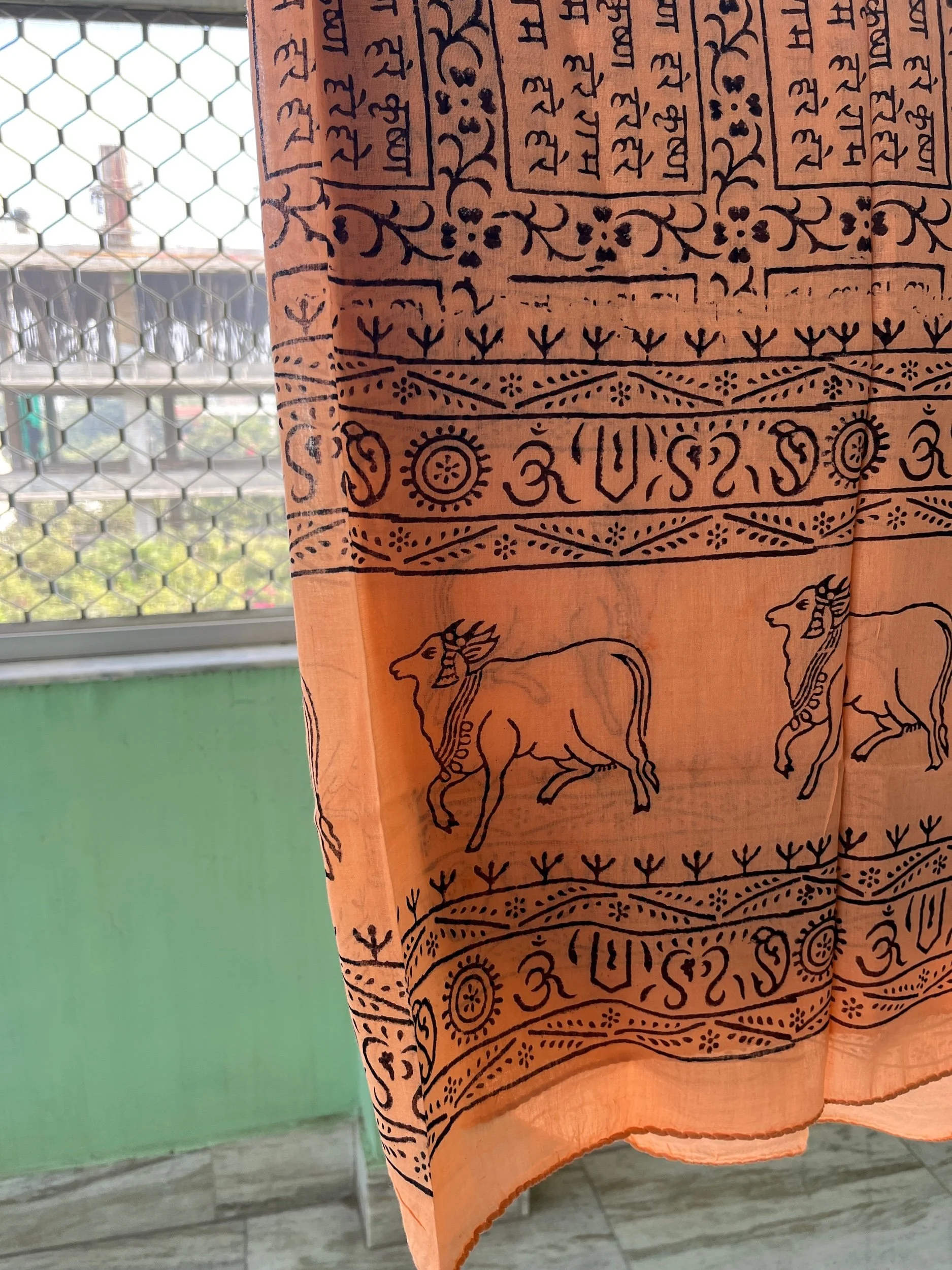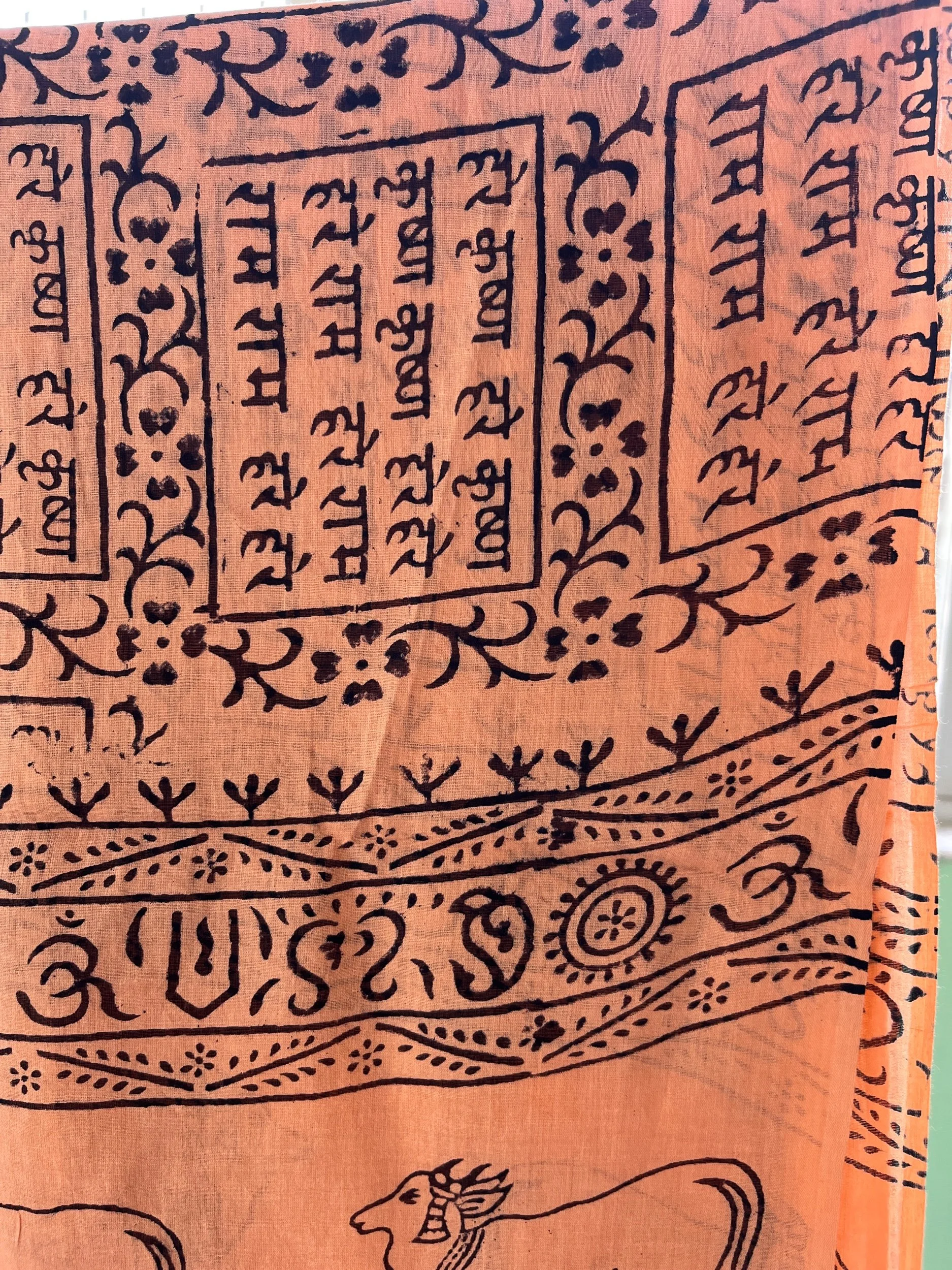 Infused with sacred sound, the Maha Mantra wraps the body in love. Hand-block printed in India, it evokes devotion, presence, and the beauty of prayer.